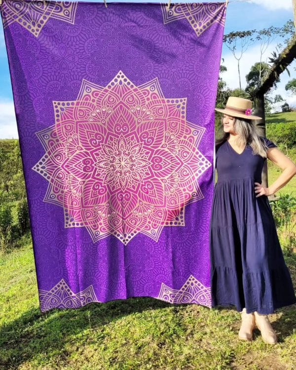 El mandala, símbolo ancestral de equilibrio, expansión y conexión interior, se convierte aquí en una obra vibrante que puedes usar para colgar en la pared, meditar, decorar tu cama, cubrir un mueble, crear un altar, llevar a la playa o convertir cualquier rincón en un espacio sagrado.
