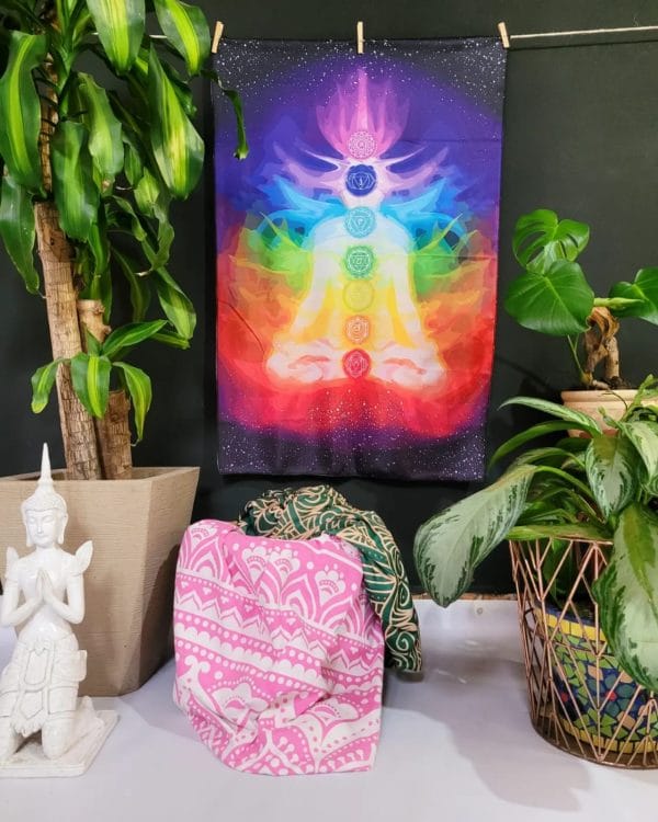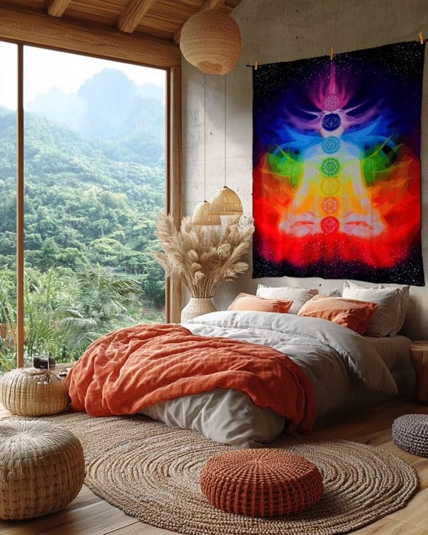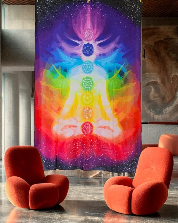 La Manta Siete Chakras Infinito es un portal visual y energético creado para acompañarte en tus momentos de calma, meditación y reconexión. Su diseño representa los siete chakras principales con una explosión de colores vibrantes que inspiran equilibrio, claridad y bienestar profundo.